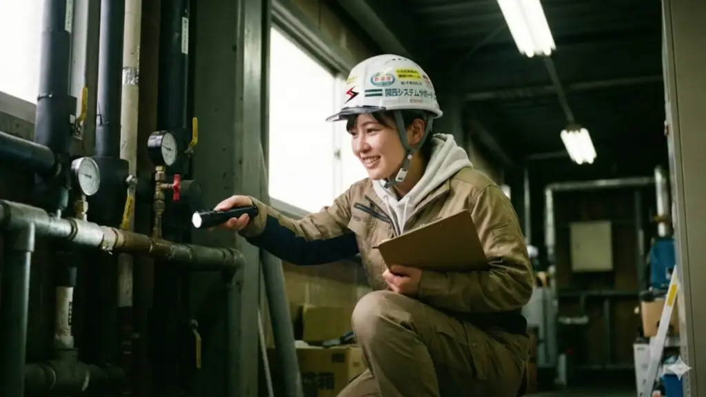 - 定期点検(機器/総合):半年ごとの機器点検、年1回の総合点検を実施し、管理者への報告にも対応。