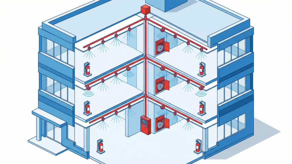 スプリンクラーは単なる高級設備ではなく、法的に設置が義務付けられている場合があります。